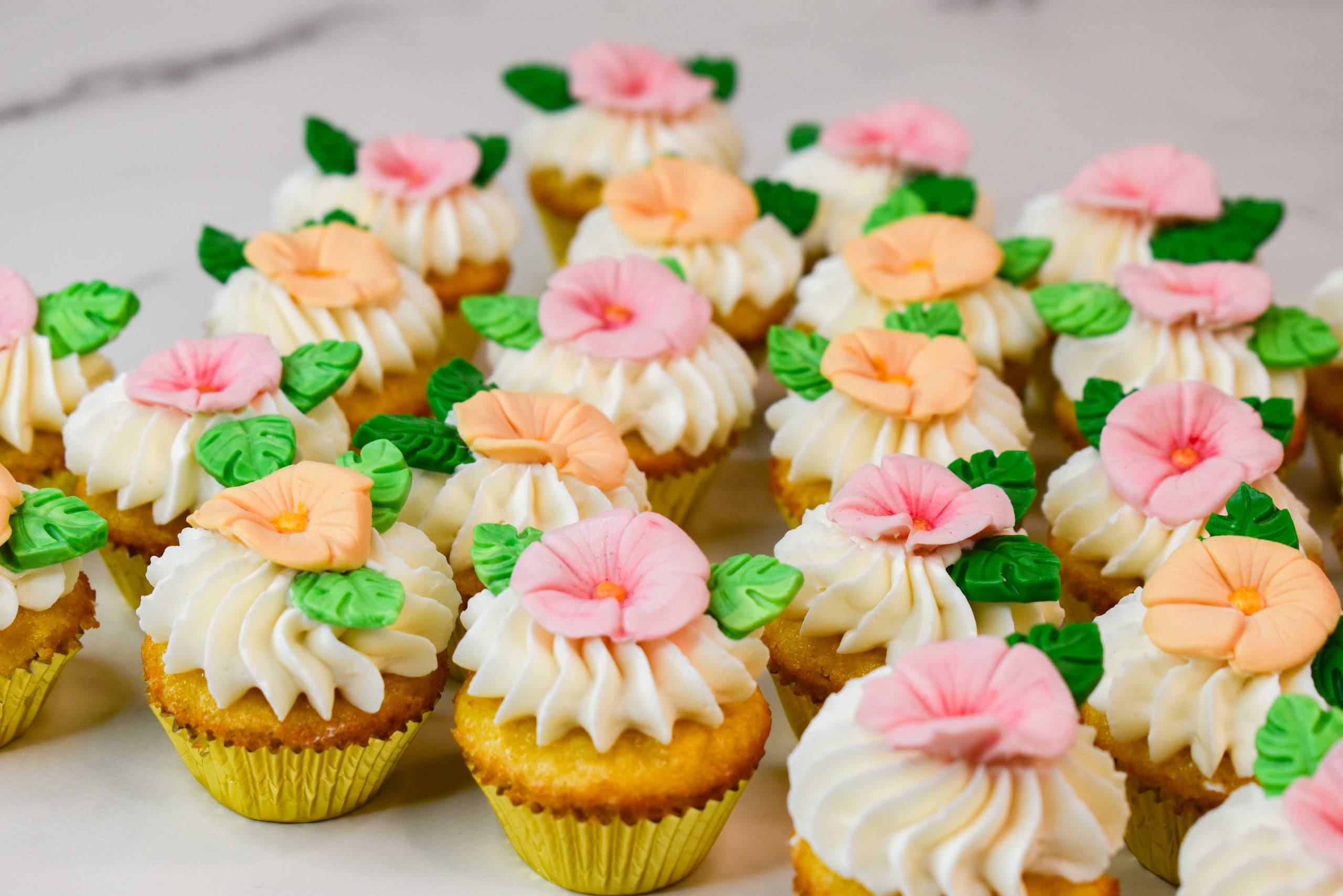 • 🍍 Pineapple Cupcakes topped with delicate tropical sugar flowers