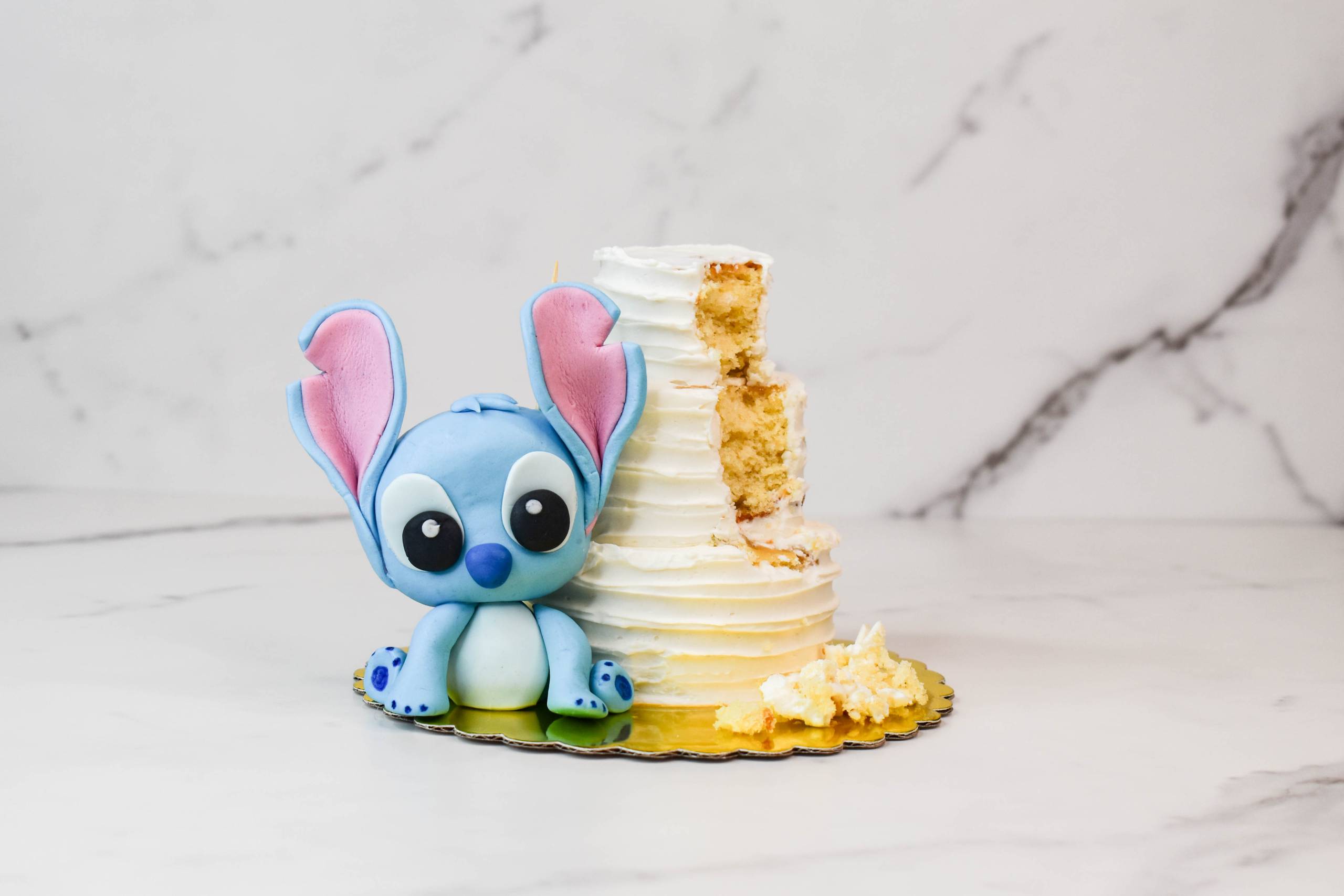 • 🎂 And as a cheeky finale — a mini wedding cake design that Stitch “accidentally” took a bite out of!
