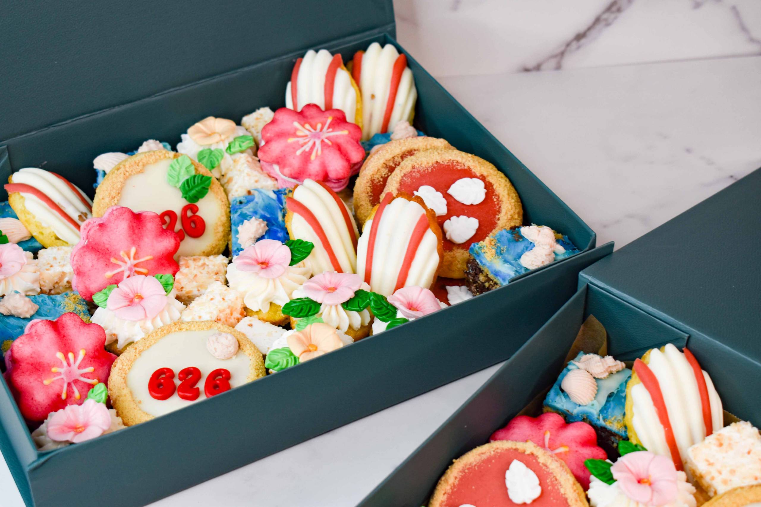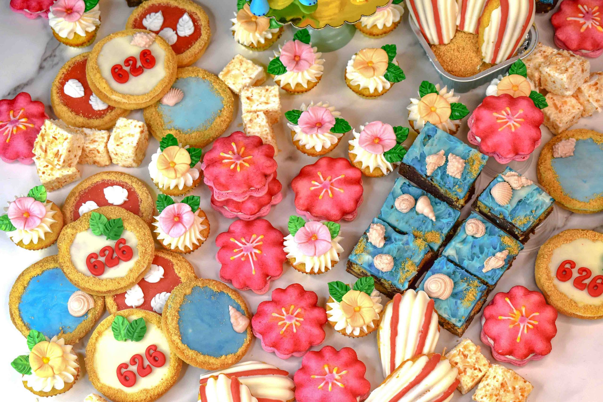 To match the vibrant Hawaiian spirit of the film, we crafted a whimsical, island-inspired dessert gift box that transported the recipients straight to paradise. Every treat was baked from scratch in our Venice kitchen with premium ingredients, artistic detail, and a whole lot of heart: Here’s a look at what we created for this unforgettable occasion:
